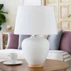 Outlet ⭐ All The Rages Simple Designs Petite Mid Century Table Lamp Light Wood And Light Gray 🎁
