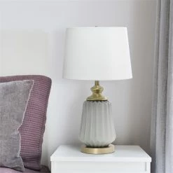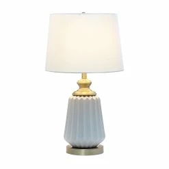 New โ All The Rages Lalia Home 25″ Classic Fluted Ceramic And Metal Table Lamp – Gray ๐