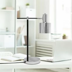 Illuminate your living space with this simple yet bold table lamp. It features a beautiful polished chrome finish with black accents. The perfect accent piece for your office, bedroom, foyer or living room!