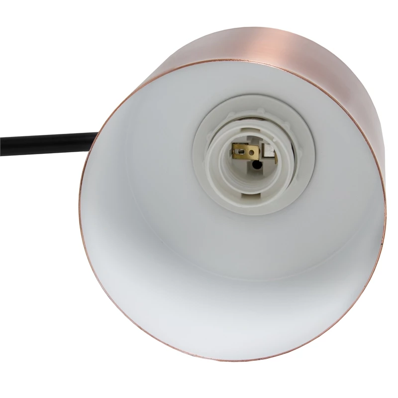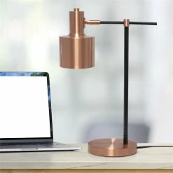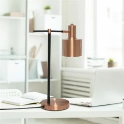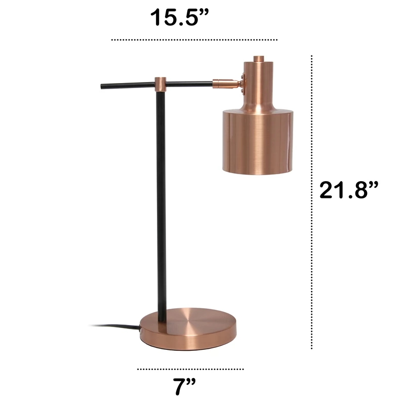 Illuminate your living space with this simple yet bold table lamp. It features a beautiful polished rose gold finish with black accents. The perfect accent piece for your office, bedroom, foyer or living room!