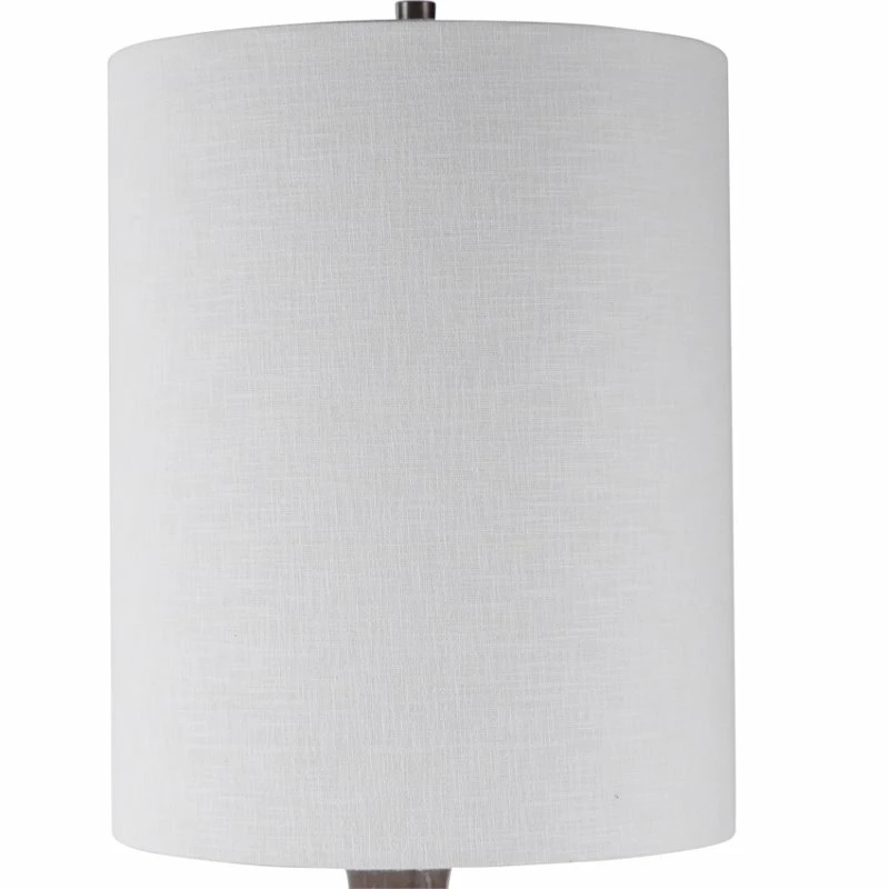 Exhibiting a casual coastal style, this ceramic accent lamp is finished in a light gray glaze with 3-dimensional sea shell accents, displayed on a thick crystal foot with brushed nickel details. The round hardback shade is a white linen fabric with natural slubbing. With the advanced product engineering and packaging reinforcement, Bowery Hill maintains some of the lowest damage rates in the industry. Each product is designed, manufactured and packaged with shipping in mind.
