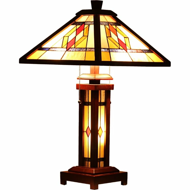 Outlet ๐ Chloe Lighting CHLOE Gareth Tiffany Mission 3 Light Double Lit Wooden Table Lamp 15″ Shade ๐