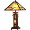 Buy ๐ Chloe Lighting CHLOE Gordon Tiffany Mission 3 Light Double Lit Wooden Table Lamp 15″ Shade ๐