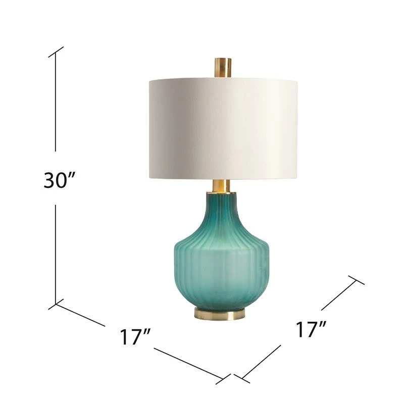 The Crestview Collection Isabella Table Lamp has a simple, clean look that makes the perfect addition to any home. The glass body has a bright blue finish complemented by the fresh, white drum shade. The lamp sits on a round, brass base. This transitional, coastal lamp is ideal for any home in need of a splash of color.
