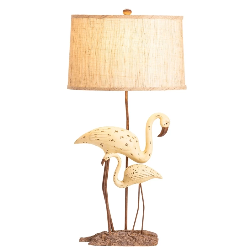 Bring a light and bright illumination to your home with the Crestview Collection Shoreline Accent Lamp, tall and proud with two white sea birds decorating the base in a distressed white resin. A gold and cream toned lamp shade lets tons of light through to your space, making this lamp perfect for an accent table or a reading nook.