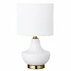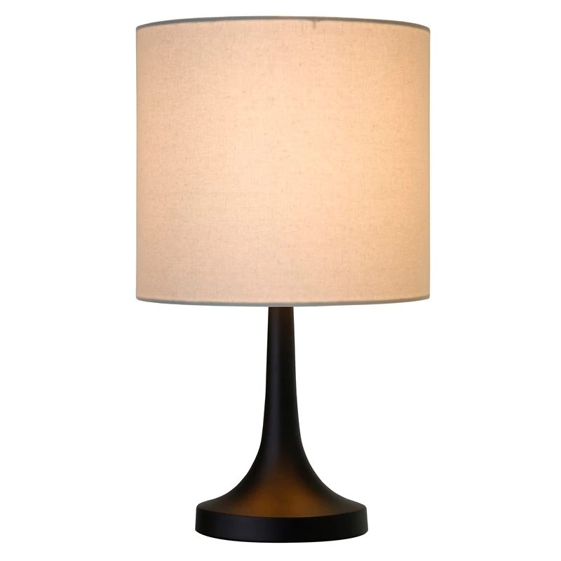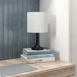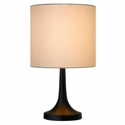 Illuminate your bedside, mantle, or hall table in traditional style with this classic yet eye-catching mini accent lamp. The exaggerated tulip-shaped metal base is finished in a warm neutral tone, allowing your color scheme to take the lead. Topped with a crisp linen drum shade, this lamp is the perfect piece anywhere you need to shed a little extra light.
