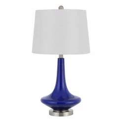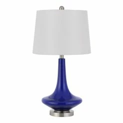 Buy ✔️ HomeRoots ‘Set Of Two 26″ Navy Blue Glass Table Lamps ✨