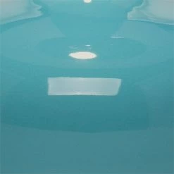 Our classic long necked single gourd ceramic table lamp with a soft blue hand applied glaze paired with a white cotton drum shade