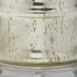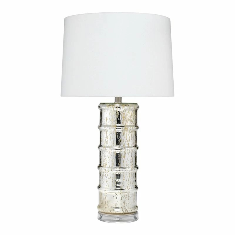 The bold looking banded column antique mercury glass base gives stunning contemporary reflections paired with a clear acrylic base