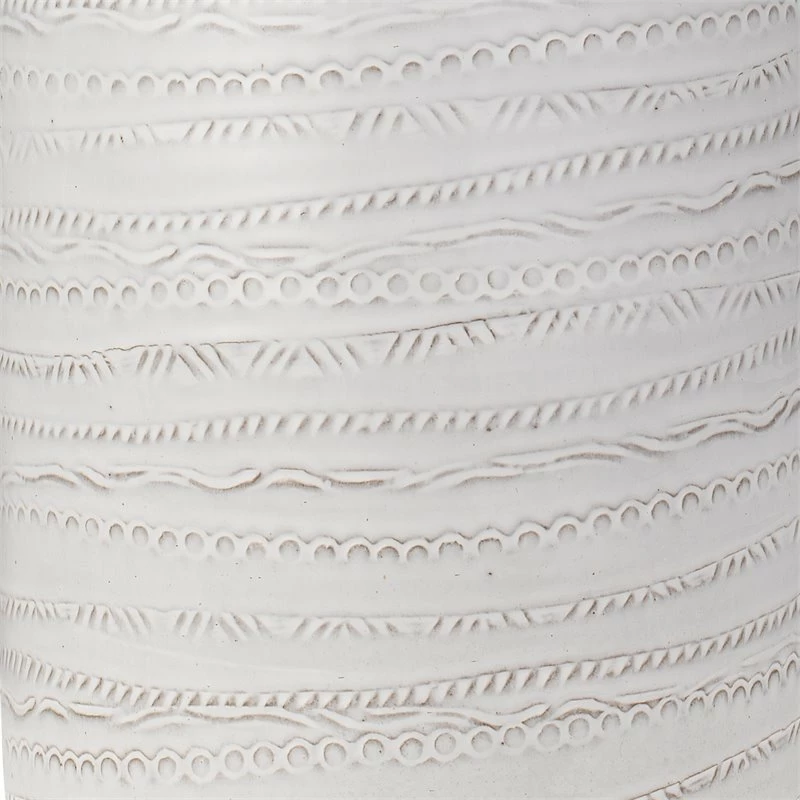 Simple yet sophisticated, creamy white, textured and hand-glazed ceramic lamp adds the perfect amount of subtle interest to any room.