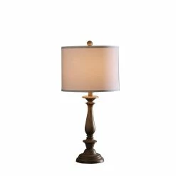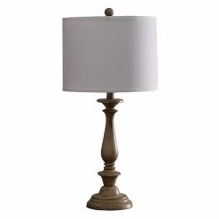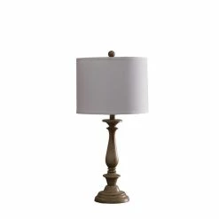 Embrace a relaxed, rustic aesthetic with this lovely antique cream candlestick table lamp. From the round base to the cotton/linen drum shade, you’ll love the shapes and light tones of this country-cottage column table lamp. This striking rustic candlestick table lamp is just the boost your living area seeks. A mix of delicate shapes and curves combine with rustic weathered tones, Column support gracefully incorporates circulars, teardrops, and ovals in a lovely rustic antique cream finish over polyresin construction. Its country-cottage look is perfectly accented with a linen softback drum shade for excellent illumination in a bedroom or home office. This lamp will bring a cozy appeal to any transitional or rustic style home.