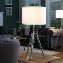 Hot Sale ๐ ORE International 34.25″ – 29.25″ In Mid-Century Adjustable Tripod Chrome/Silver Metal Table Lamp ๐