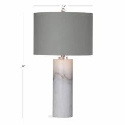 The Raywick Table Lamp features a white marble cylindrical base and a grey drum shade, adding a touch of modern minimalism to any living area. Marble is a natural occurring product and is subject to variation as no two pieces are going to be the same.