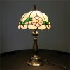 Antique Stained Glass Desk Table Lamp:Desk Table Lamp. This antique style table lamp measures 24 inches high x 23 inches wide x 7 in. base with felt bottom. Has a roller switch, both light come on together. Solid Brass base with an antique finish.