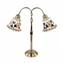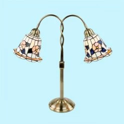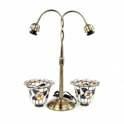 Cheap ❤️ Renovators Supply Manufacturing Twin Goose Neck Desk Table Lamp Brass Floral Stained Glass Double Light 24″ H ⭐
