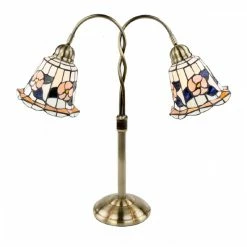 Cheap ❤️ Renovators Supply Manufacturing Twin Goose Neck Desk Table Lamp Brass Floral Stained Glass Double Light 24″ H ⭐