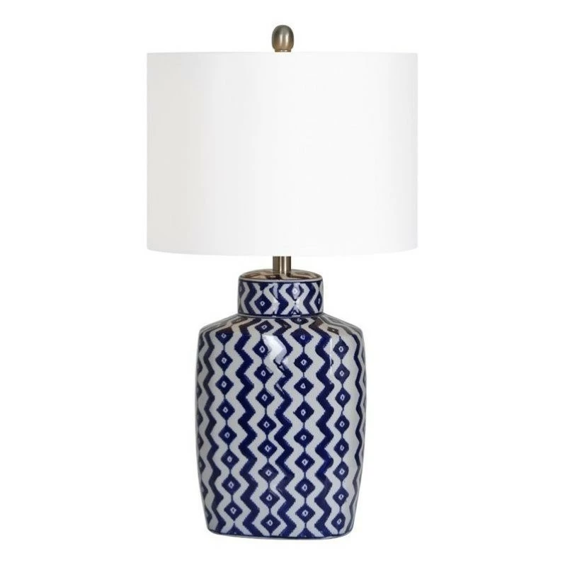 Best Pirce โ๏ธ Renwil Beryl Table Lamp In Blue And White Chevron ๐