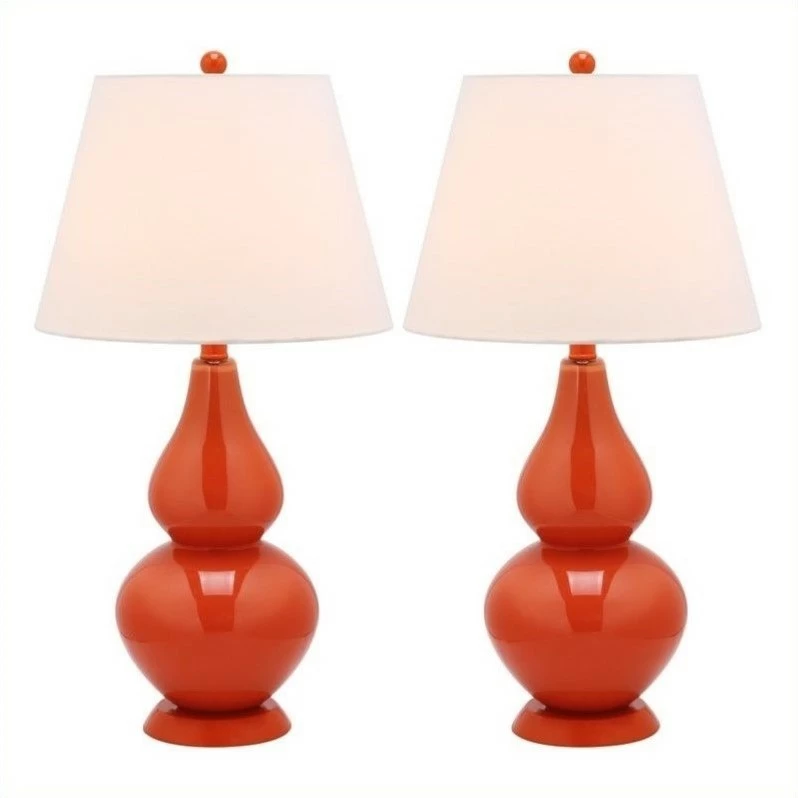 Lowest price online On all Safavieh Cybil Glass Double Gourd Lamp in Blood Orange (Set Of 2) – LIT4088D-SET2