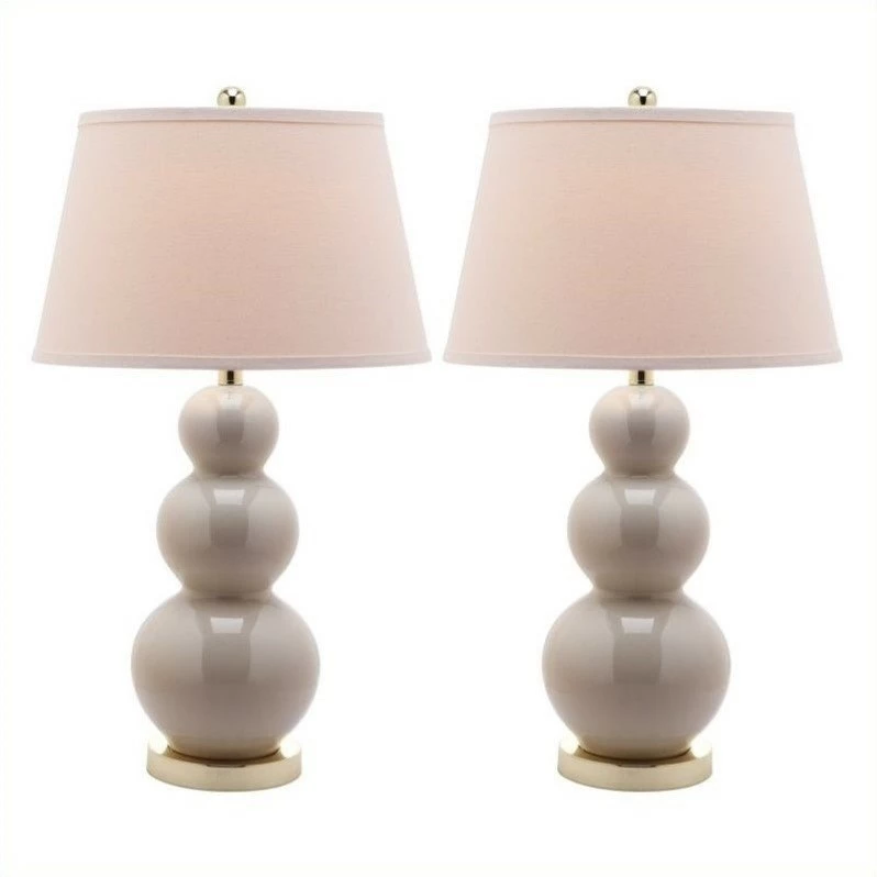 Lowest price online On all Safavieh Pamela Triple Gourd Ceramic Lamp in Light Grey (Set of 2) – LIT4095F-SET2