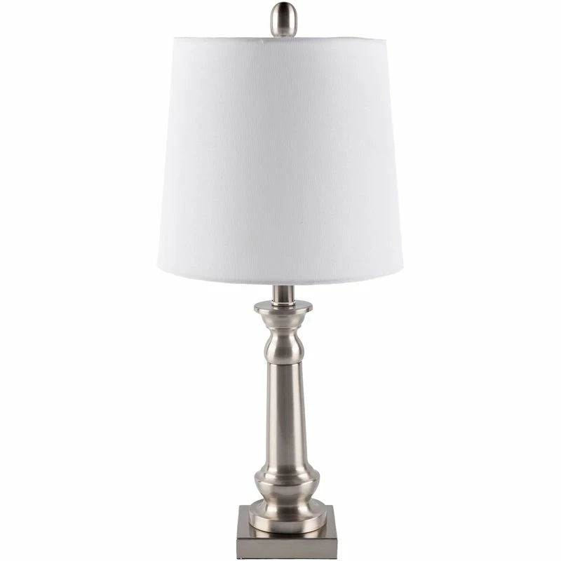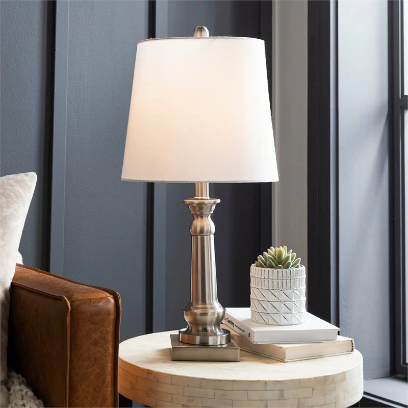 Deals 😉 Surya New West 1-Light Traditional Linen And Metal Table Lamp In Nickel/White 👍