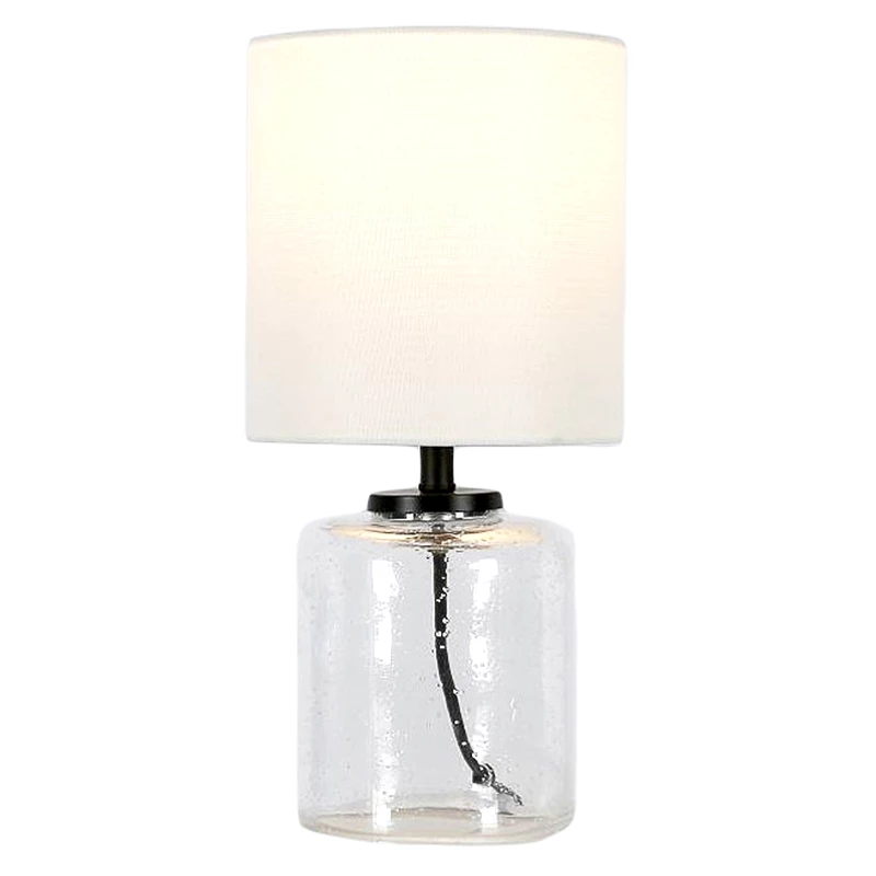 Bring a touch of retro styling to your bedside, mantle, or hall table with this coastal-inspired mini accent lamp. The jar-shaped base is made of seeded glass, creating an organic feel to the fixture. Accented with blackened bronze metal and a crisp linen shade, this lamp is the perfect piece anywhere you need to shed a little extra light.