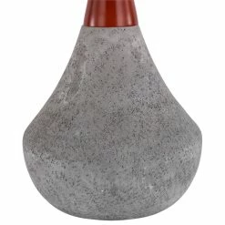 The Carson Collection blends traditional aesthetics with industrial materials to create a post-modern look that can stand out among others. This table lamp features a two tones of colors. The bottom base is made of cement in matt gray like a carved stone and the upper part is a cherry color wood element. It is completed by a traditional tapered fabric shade that complements many tables and displays.